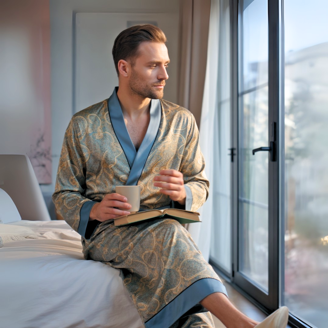 BestsellerMen’s Patterned Silk-Like Robe – Elegant Design & Comfortable Fit